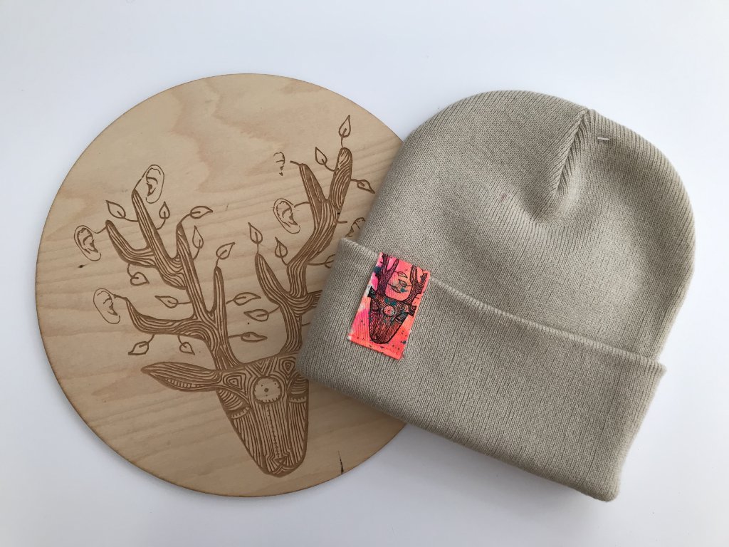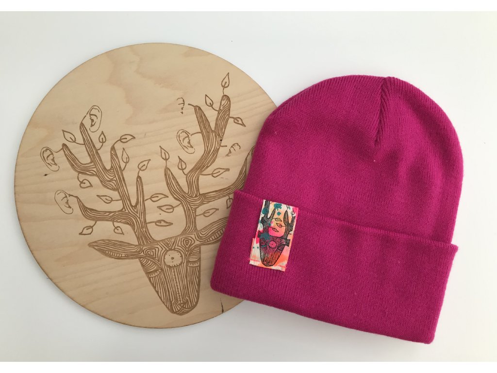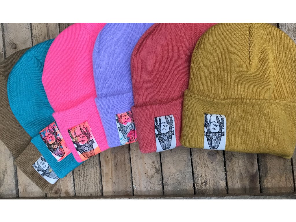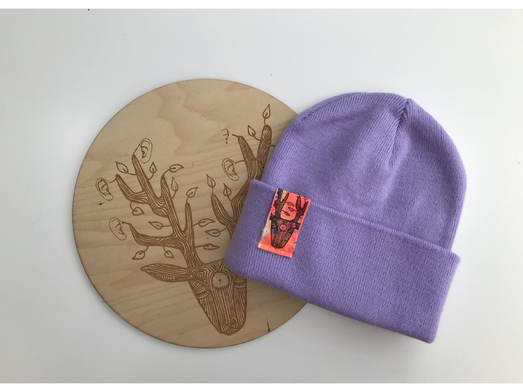 Ručně barvený a tištěný štítek.
