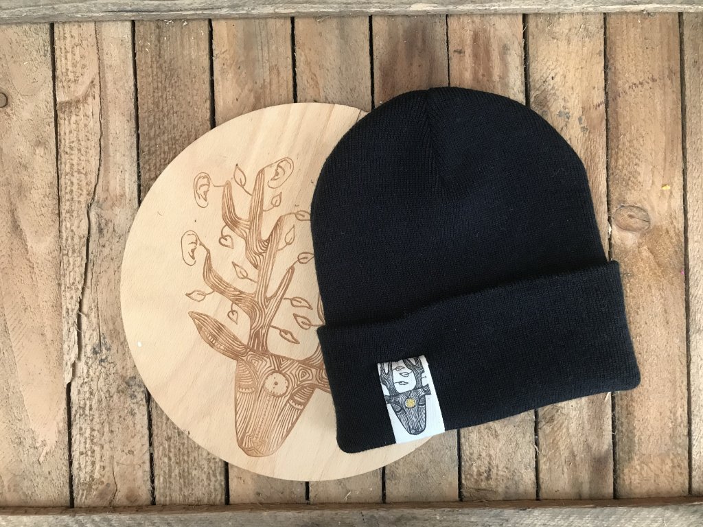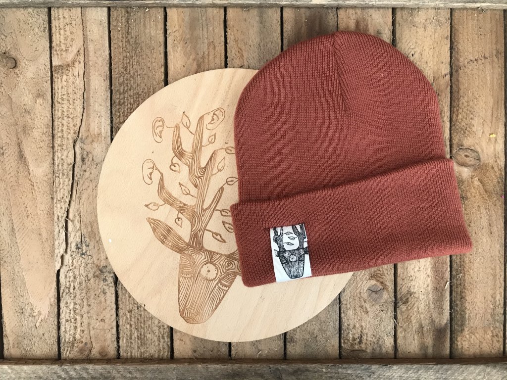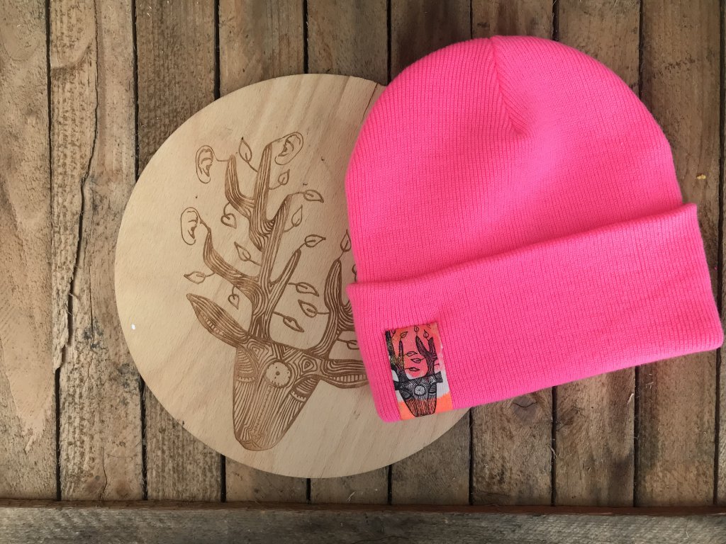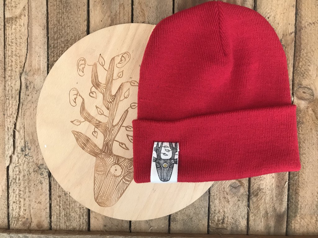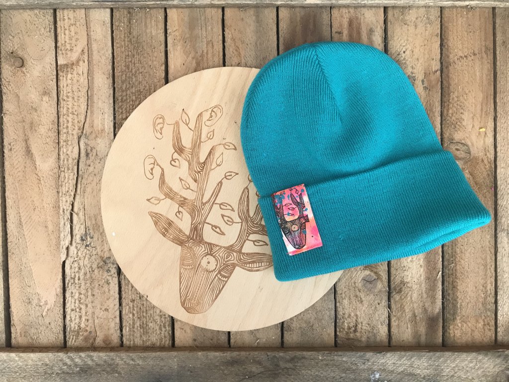 Ručně barvený a tištěný štítek.