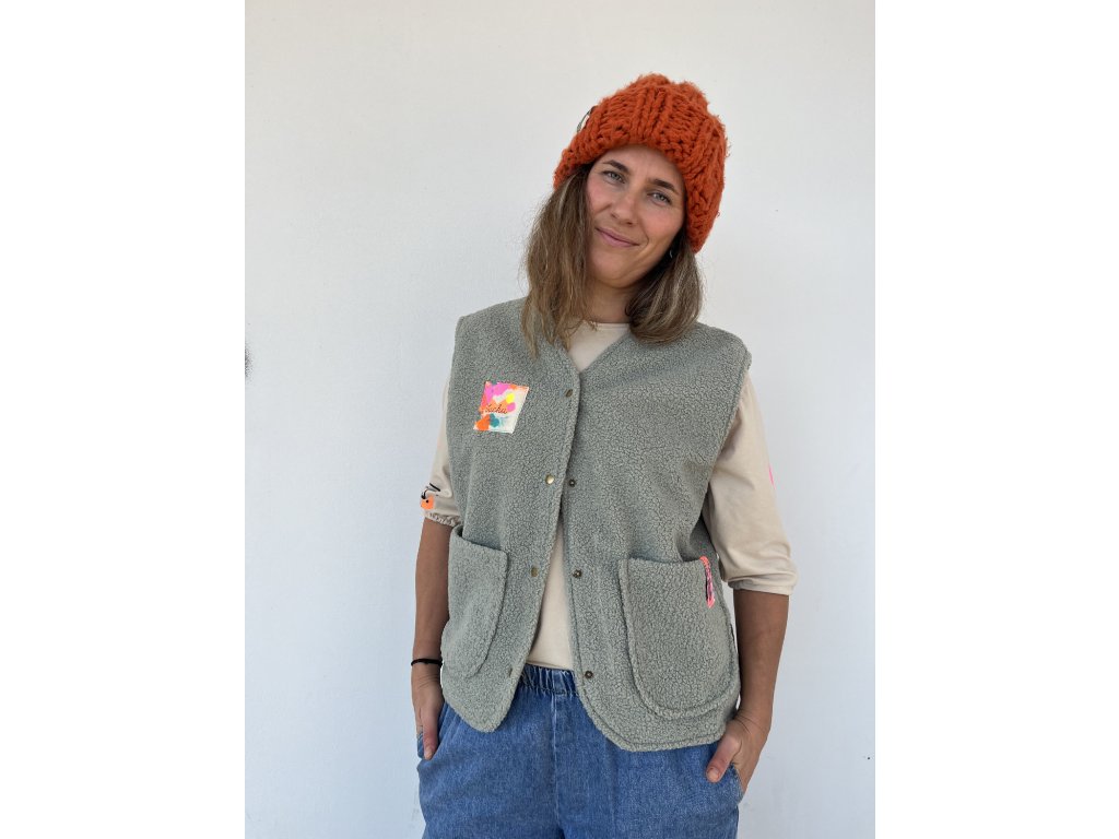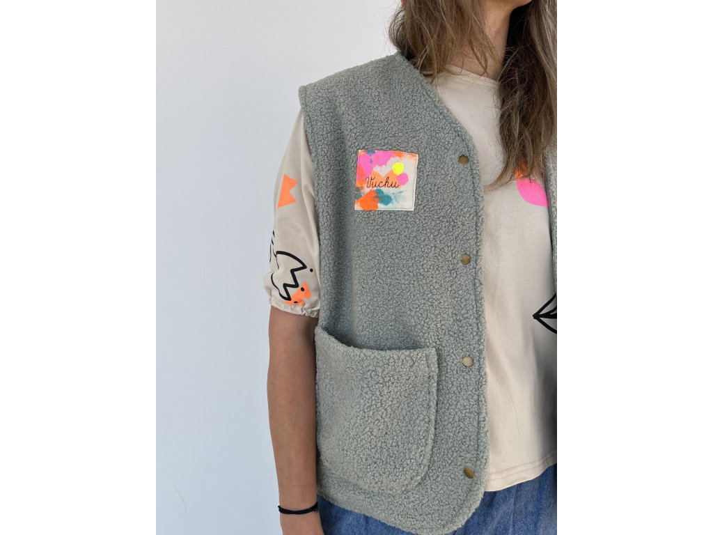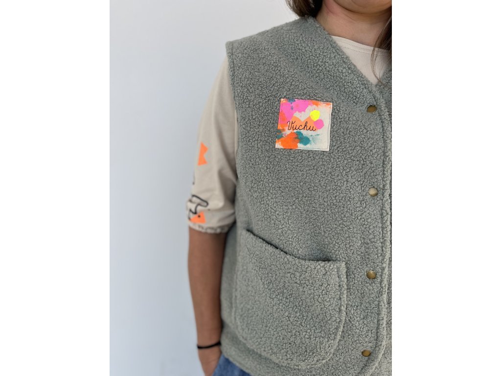 Měkká a huňatá beránková vesta je velmi příjemná a hřejivá.Je to kousek který tě zahřeje při cestě na vrchol ale klidně i poslouží na zahrádce s šálkem teplého čaje .